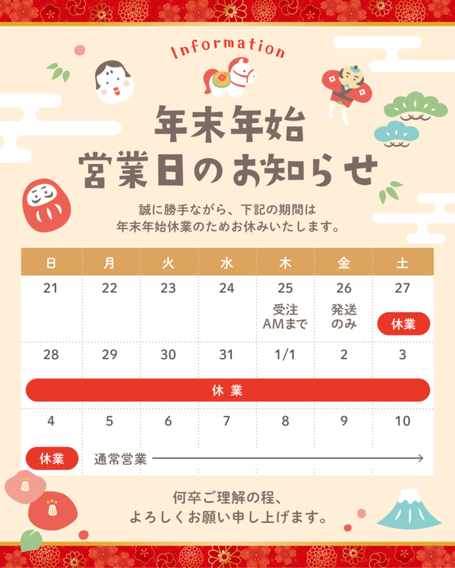 🛒商品の受注・発送は 1/5(月) より通常営業に戻ります。